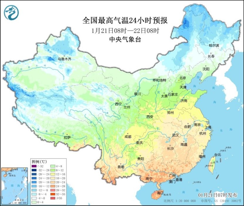 预计今明两天,我国大部地区仍维持少雨雪的状态,南方部分地区气温明显偏高,以湖北武汉为例,今天最高气温20℃,明天最高气温将达到21℃,但后期随着寒潮的到来,武汉27日最高气温将降至5℃上下。